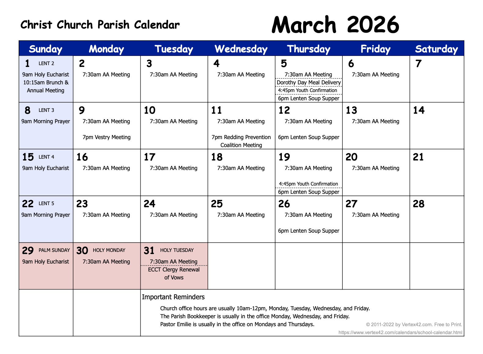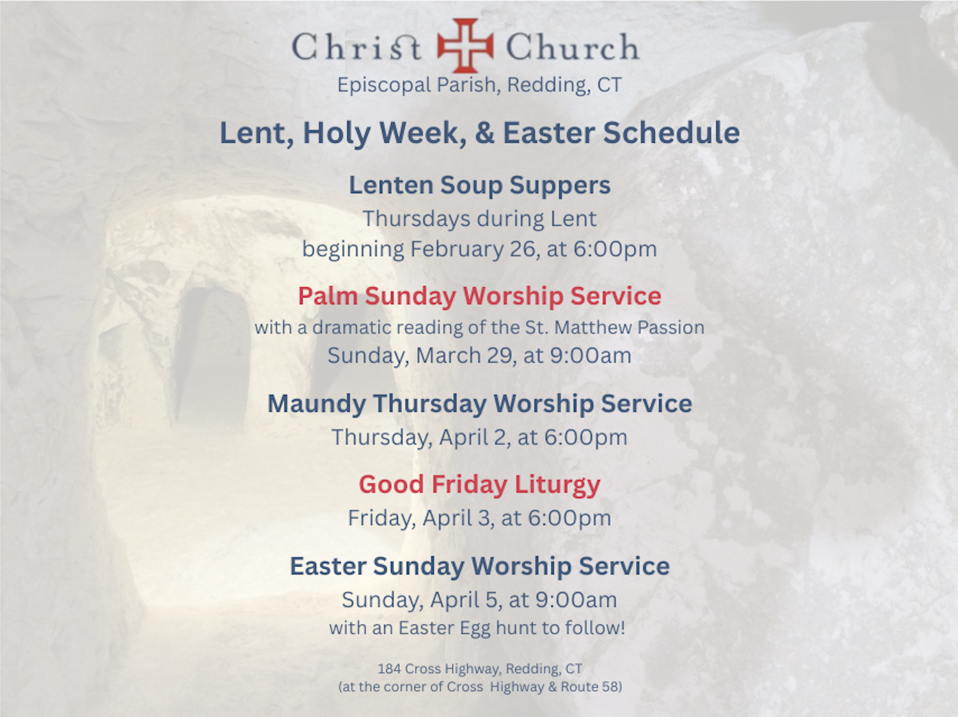 To keep up with current events each week at Christ Church, please email [email protected], and ask to be added to our weekly email newsletter.