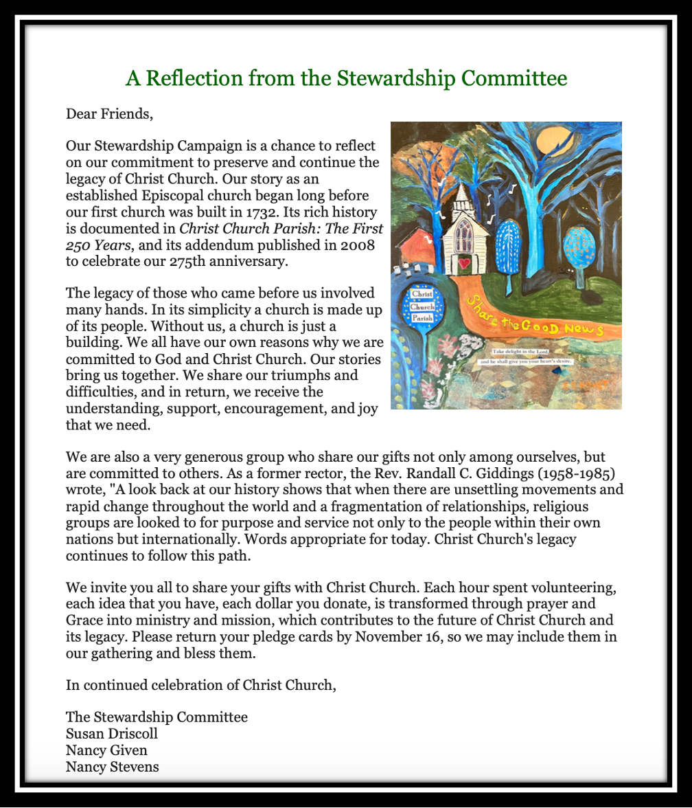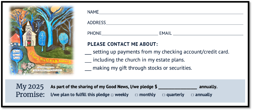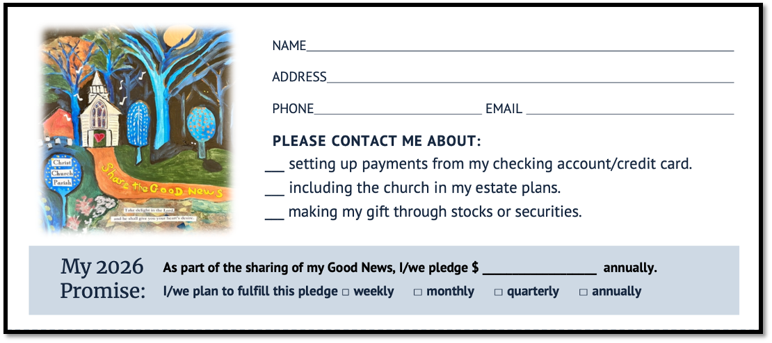 IF YOU WOULD LIKE TO MAKE AN ONGOING FINANCIAL CONTRIBUTION TO THE LIFE AND MINISTRY OF CHRIST CHURCH PARISH, PLEASE CONSIDER MAKING AN ANNUAL PLEDGE FOR FISCAL YEAR 2026.