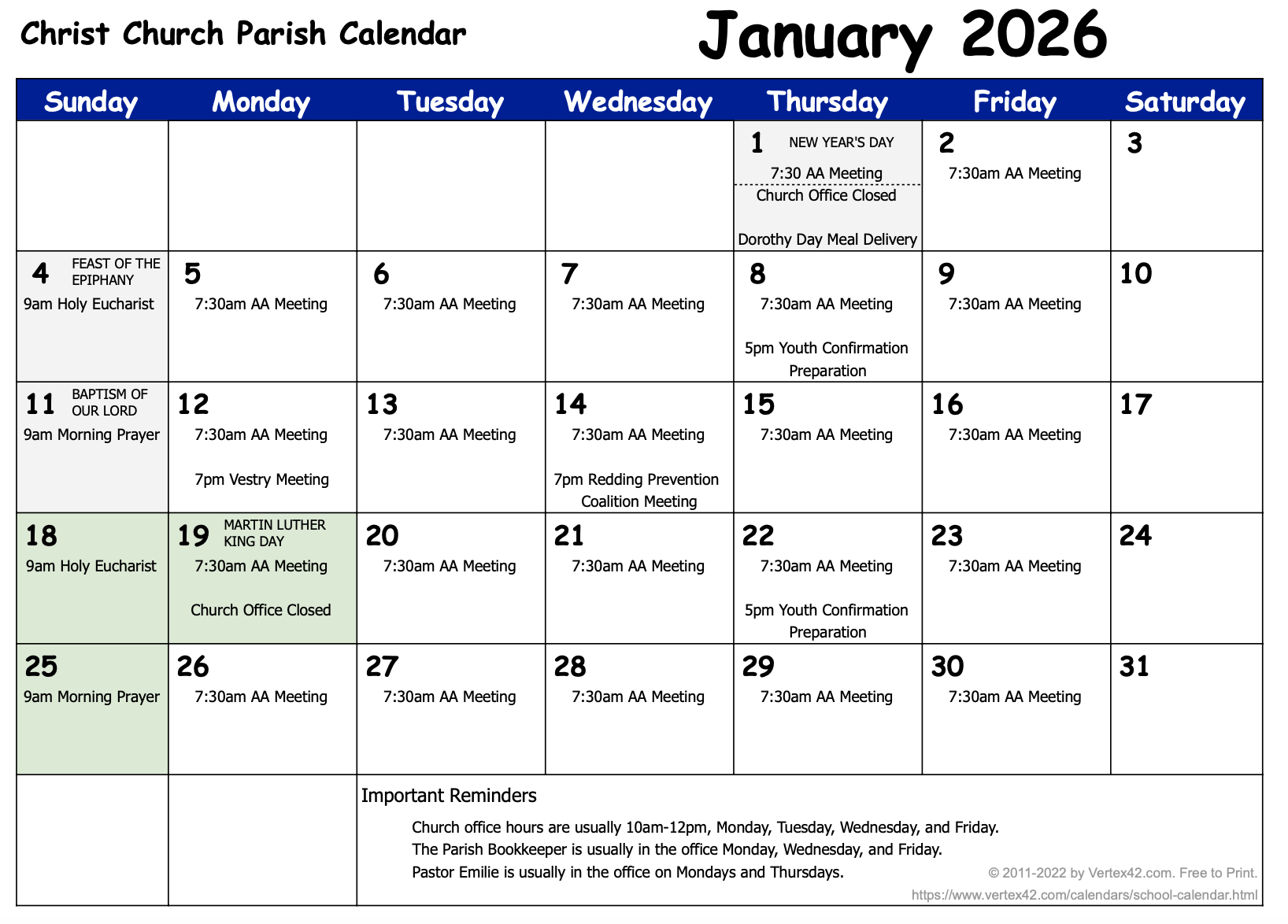 To keep up with current events each week at Christ Church, please email [email protected], and ask to be added to our weekly email newsletter.